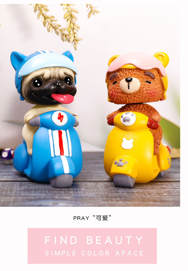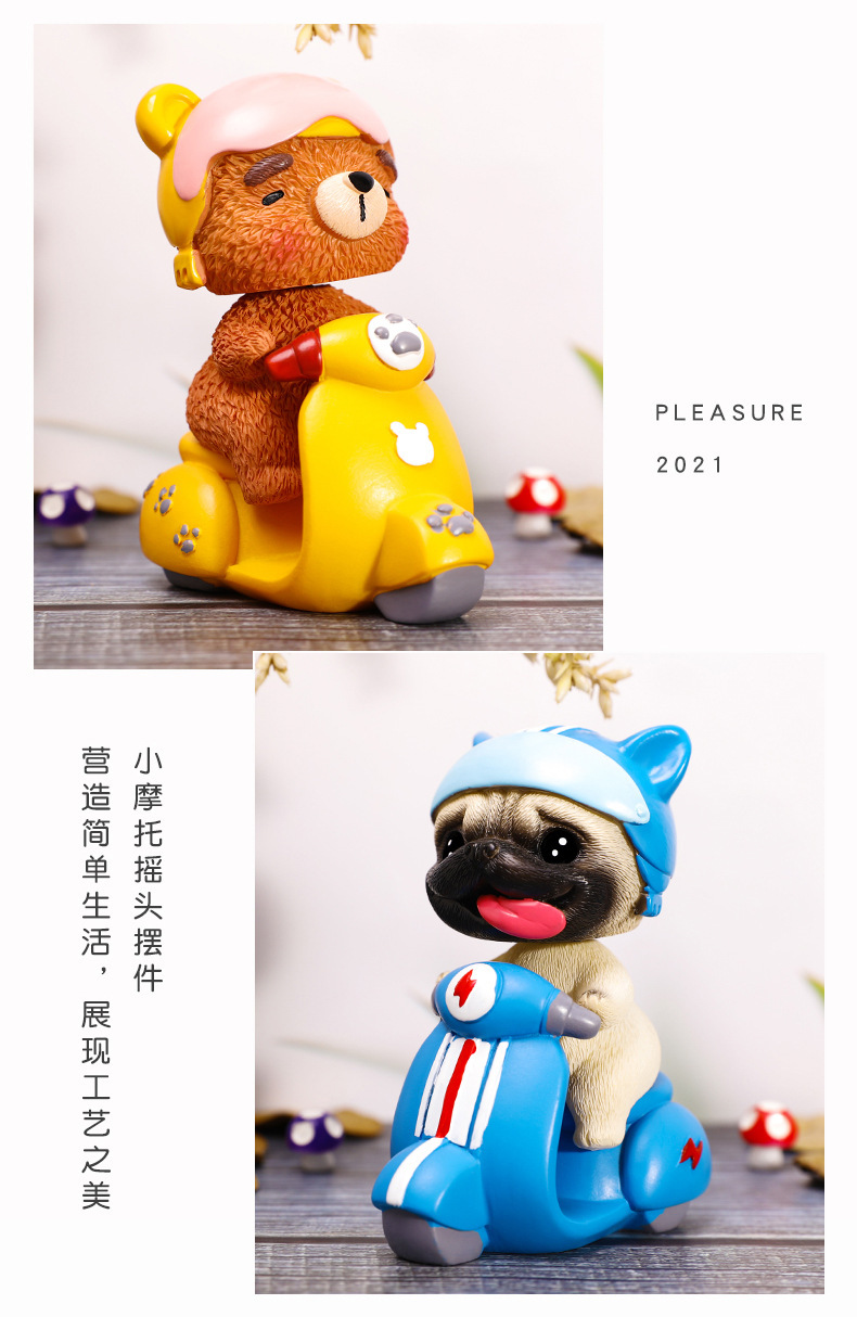 小摩托小狗公仔搖頭擺件定制 汽車公仔擺件禮品定制