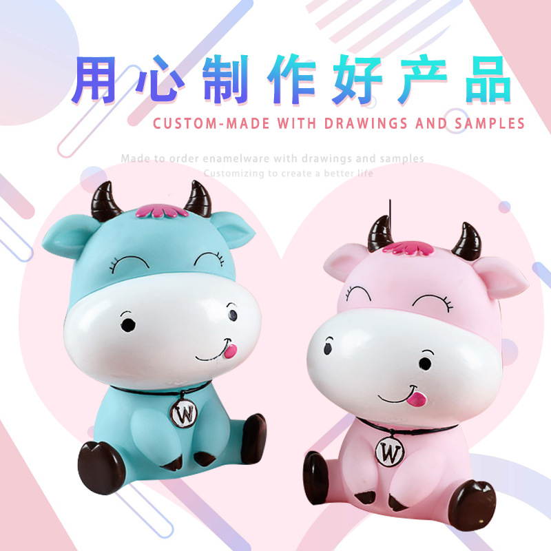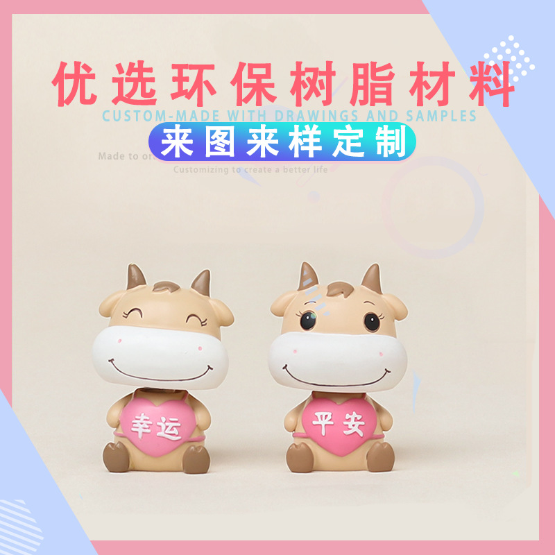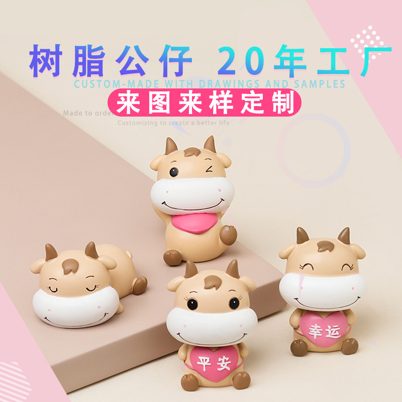 可愛(ài)卡通牛吉祥物定制 牛年樹(shù)脂擺件